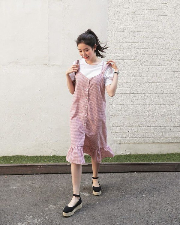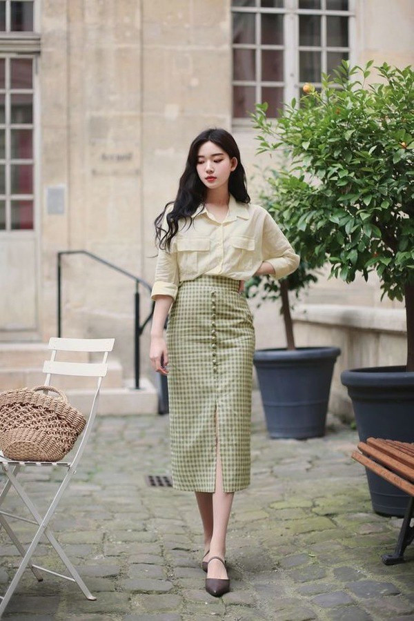 Chân váy có đường cúc dọc nhìn thì nữ tính nhưng không phải ai cũng mặc đẹp, các nàng nấm lùn cần cân nhắc kỹ lưỡng khi diện mẫu váy này.