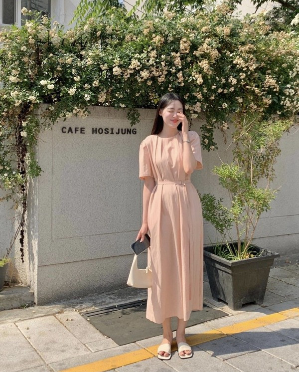 Váy có dây thắt eo dễ dàng điều chỉnh để diện sao cho thoải mái nhất, nếu không thì nàng phối cùng thắt lưng cũng cho ra hiệu quả tương tự.