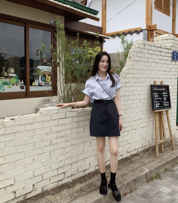 Chân váy ngắn dáng suông vừa tôn dáng vừa có tính ứng dụng cao và dễ dàng mix & match. Phối chân váy suông + áo sơ mi cộc tay là có ngay outfit đẹp mê li diện đến công sở.
