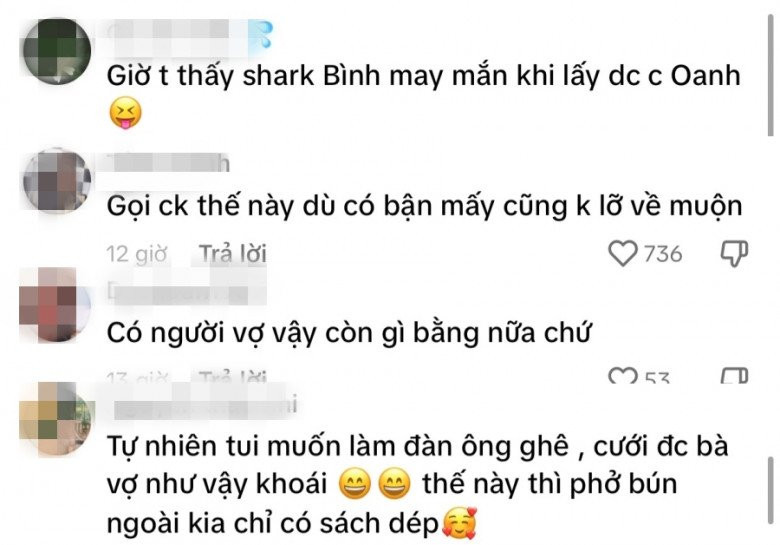 Không những vậy, cách xưng hô khéo léo của Phương Oanh với Shark Bình cũng được nhiều người khen nức nở. Chẳng hạn như mới đây, Phương Oanh đã đăng tải clip làm mâm cơm ngày Tết với canh khổ qua cá thác lác và bò cuộn cải.