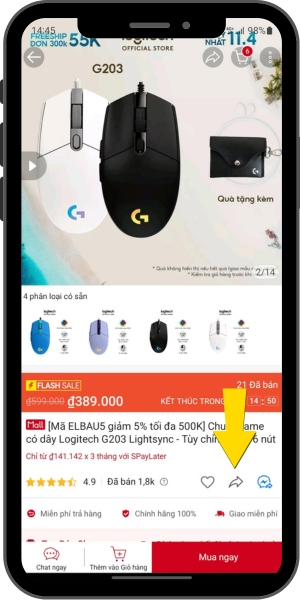 Khi chọn được sản phẩm cần mua. Tại trang chi tiết sản phẩm bạn hãy bấm vào biểu tượng mũi tên như hình dưới để tiến hành sao chép link sản phẩm nhé.