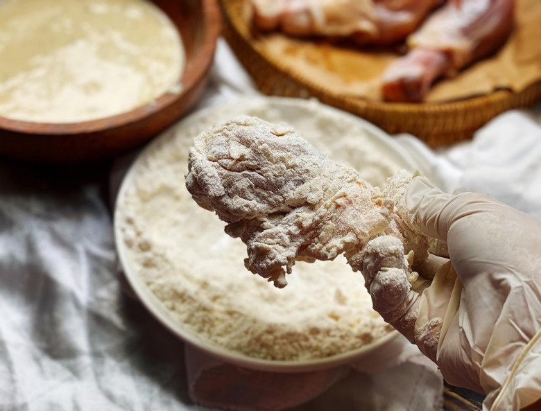 Bước 3: Tẩm bột đùi gà