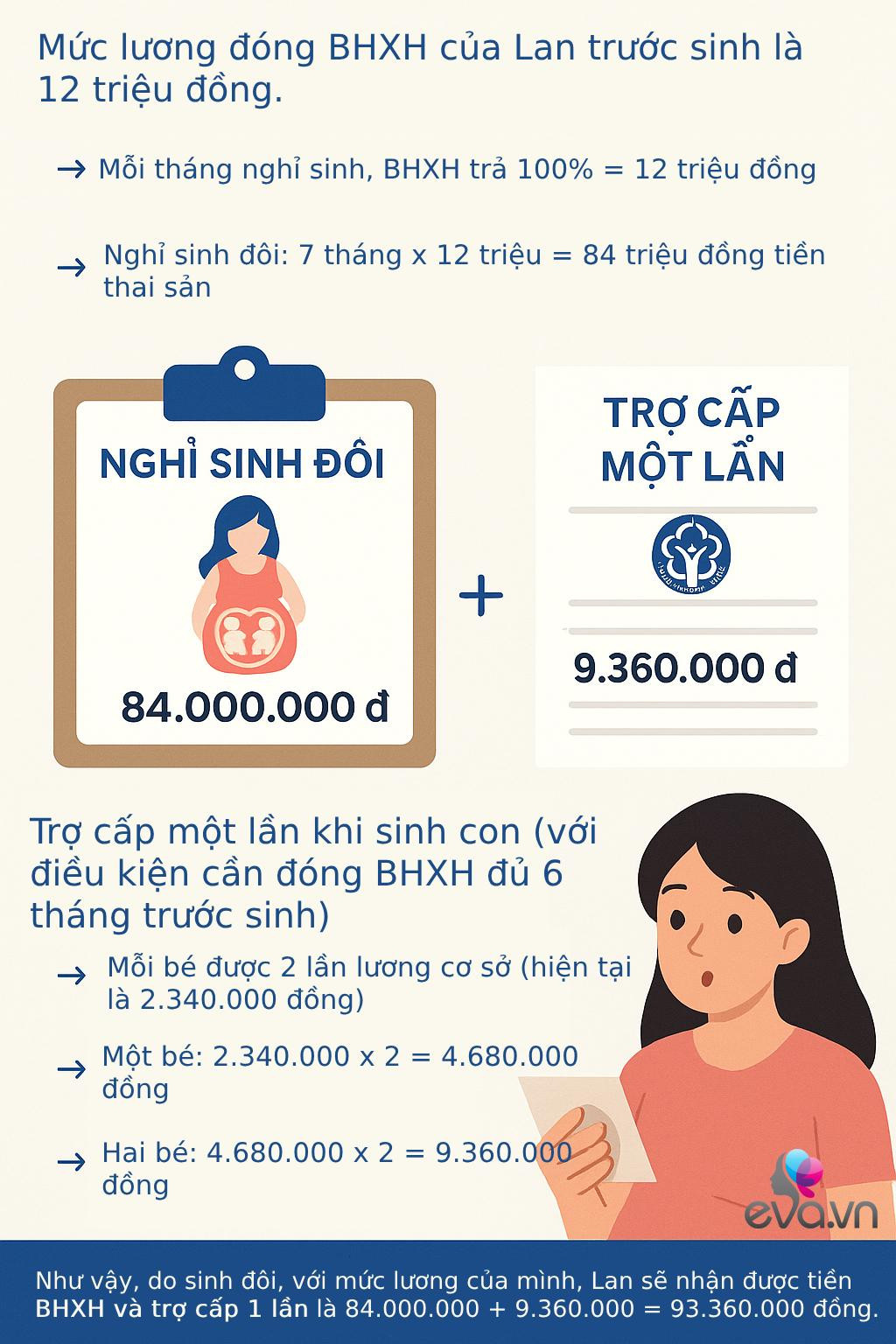 Ngay lập tức, Lan nghiên cứu thật kỹ chế độ thai sản dành cho người sinh đôi trở lên.