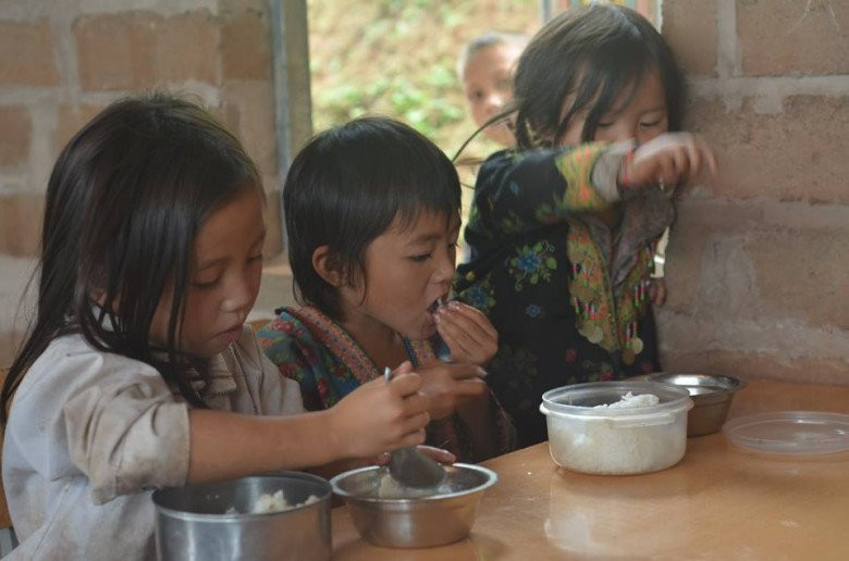 Với 150.000 đồng/tháng, các em học sinh sẽ được nuôi cơm trưa từ Thứ Hai tới Thứ Sáu với giá của mỗi bữa là 8.500 đồng với các món thịt, đậu, canh rau… Đặc biệt bữa cơm do các thầy cô tại trường nấu, với đầy đủ chất dinh dưỡng, ấm nóng tình thương. Đây chính là lý do to lớn giúp các em thích đi học hơn: được học chữ, được ăn no và có một giấc ngủ trọn vẹn.
