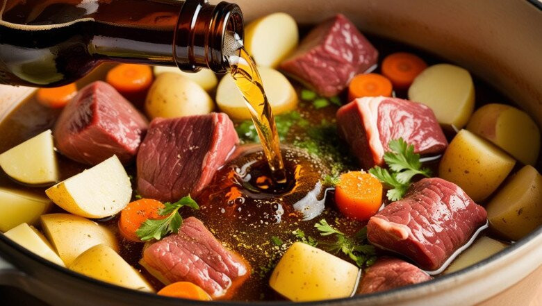 Một cách rất hay được các bà nội trợ chia sẻ là dùng bia thay nước hầm. Bia chứa các loại axit nhẹ giúp làm lỏng cấu trúc protein trong thịt, từ đó làm thịt nhanh mềm. Khi nấu, dùng bia để ướp thịt trước khi nấu hoặc thay một phần nước hầm bằng bia. Điều này không chỉ giúp thịt mềm hơn mà còn tạo nên hương thơm hấp dẫn rất đặc trưng cho món bò hầm.
