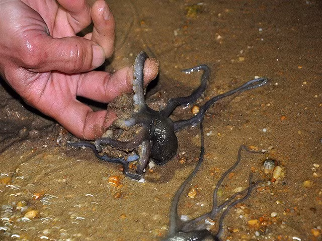 Nhiều người thường bị nhầm lẫn ruốc chân dài với bạch tuộc con do chúng khá giống nhau. Nhưng thực tế ruốc lỗ màu xám có ánh xanh, khi được nấu chín chúng chuyển thành màu hồng khác hẳn so với bạch tuộc con. “Mùa ruốc chân dài rơi vào thời điểm từ tháng 7 đến tháng 10 âm lịch. Người ở các vùng biển thường đi bắt ruốc lỗ vào ban đêm. Khi ấy họ dùng lồng bát quái –một ngư cụ của dân chài, lưới hoặc đi soi trong lỗ. Hễ thấy bóng dáng "con mồi" là họ nhanh tay bắt lấy chúng”, chị Thuỳ Dương (32 tuổi) – chủ cửa hàng thuỷ hải sản ở Quảng Ninh cho biết.