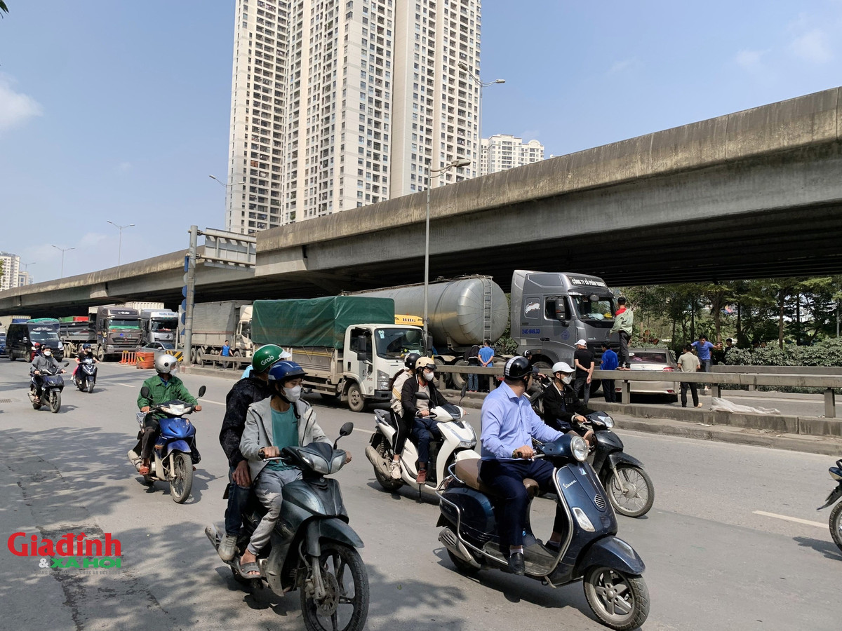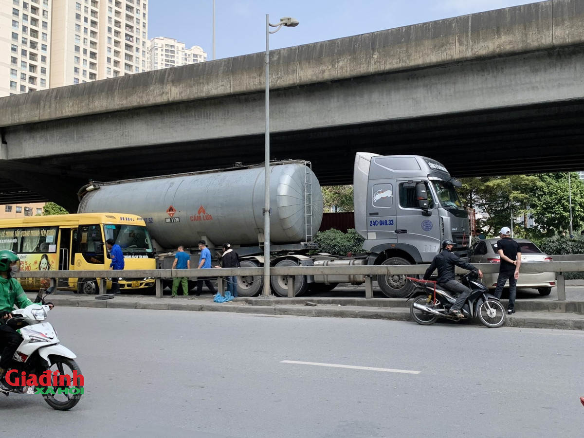 Va chạm giao thông vào khoảng 12 giờ 30 phút (4/2) tại lối lên đường Vành đai 3 trên cao khiến tình trạng ùn tắc càng thêm trầm trọng