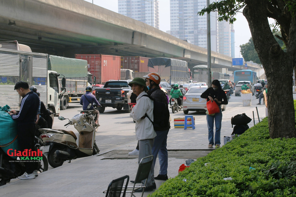 Người dân đứng đợi xe khách trên đường Khuất Duy Tiến.