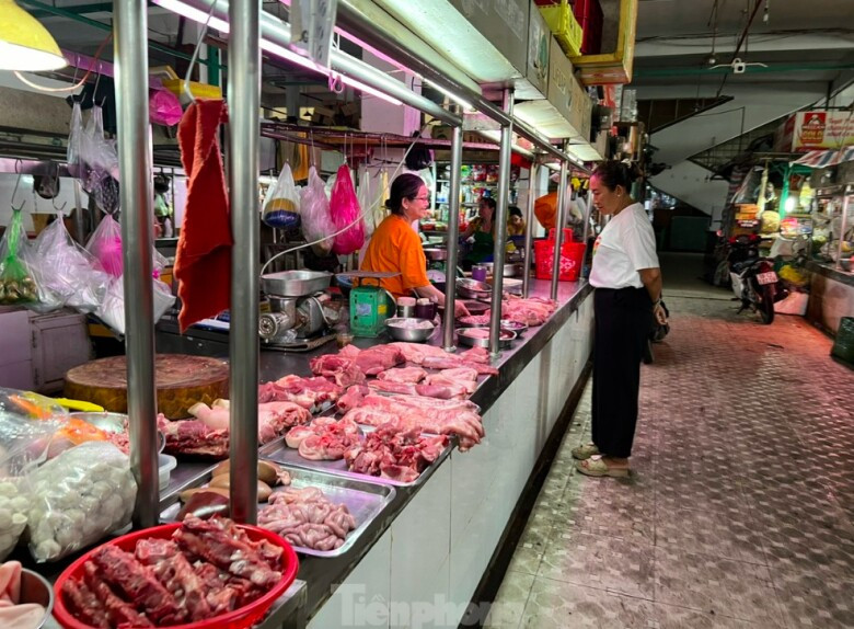 Tại chợ Bàn Cờ (quận 3), người đi chợ đông nhưng lượng khách mua thịt heo không bao nhiêu. Sạp hàng thịt heo của bà Mơ trong chợ dù qua cao điểm trưa nhưng vẫn còn ê hề. Lâu lâu mới có khách ghé vào mua vài lạng thịt về nấu canh, bà Mơ mừng ra mặt.