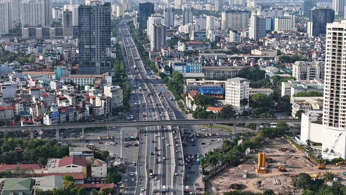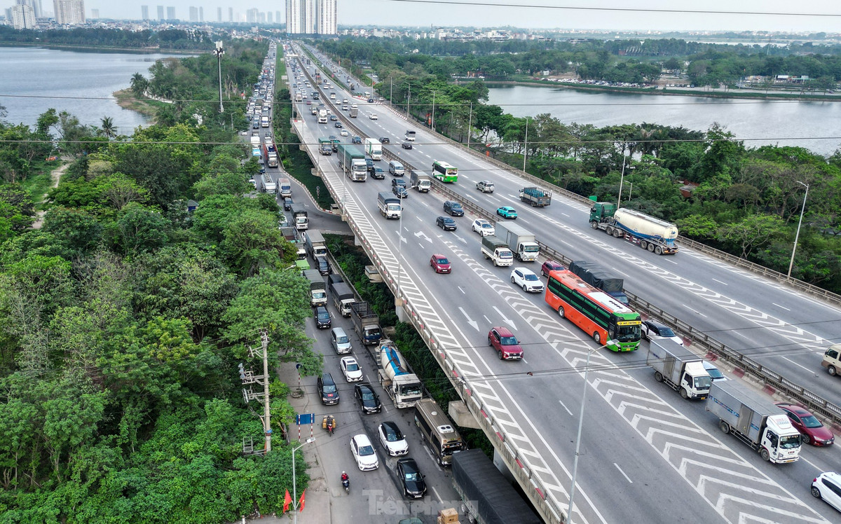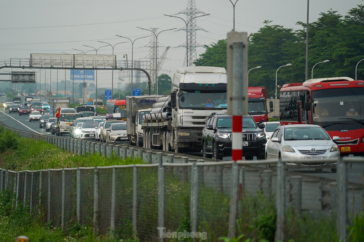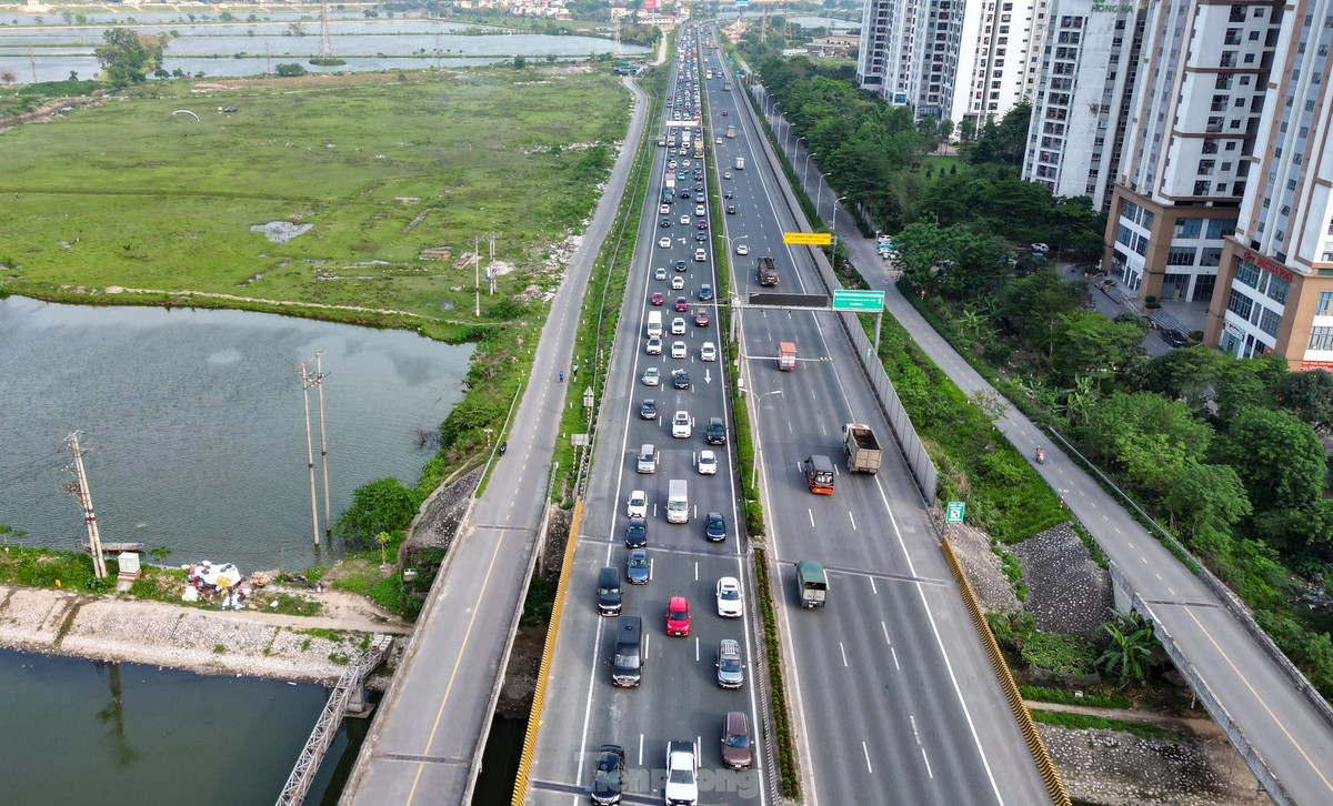 Trên tuyến cao tốc Pháp Vân - Cầu Giẽ lưu lượng phương tiện tăng cao, nối đuôi nhau hướng vào trung tâm thành phố.
