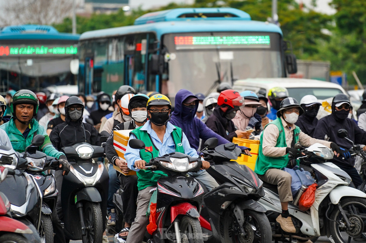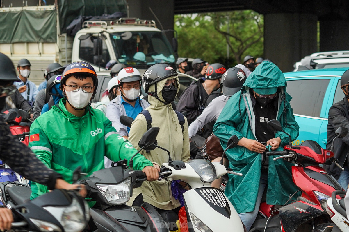 Sau cơn mưa, càng về chiều tối, lưu lượng phương tiện đổ về Thủ đô mỗi lúc một tăng.