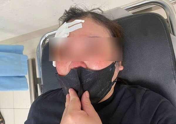 Vừa dứt lời, người đàn ông trên ô tô bán tải xuống xe, dùng dùi cui vụt trúng mũ bảo hiểm của chị M, trượt xuống đuôi mắt, gây choáng và chảy nhiều máu".