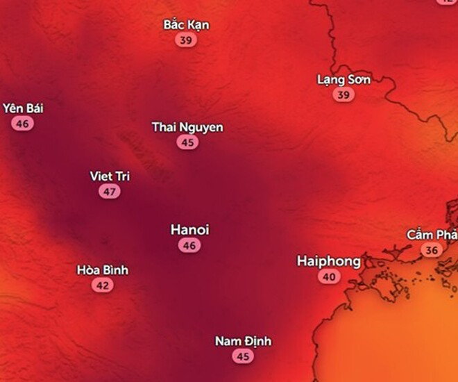 Cụ thể, các mô hình hiện tại (của Mỹ, châu Âu và Hàn Quốc) đều nhận định rằng trong ngày 8/5, nhiệt độ Hà Nội sẽ lên rất cao, khoảng 42 - 43oC (nhiệt độ cảm nhận thực tế ngoài trời). Riêng mô hình của Đức - vốn được coi là mô hình hiện đại và cập nhật nhanh - có dự báo “gắt” nhất, là nhiệt độ cảm nhận thực tế ở Hà Nội vào trưa và chiều 8/5 sẽ lên đến 46oC - thực sự là mức mà con người rất khó chịu đựng nếu ở ngoài trời lâu.