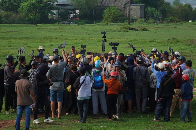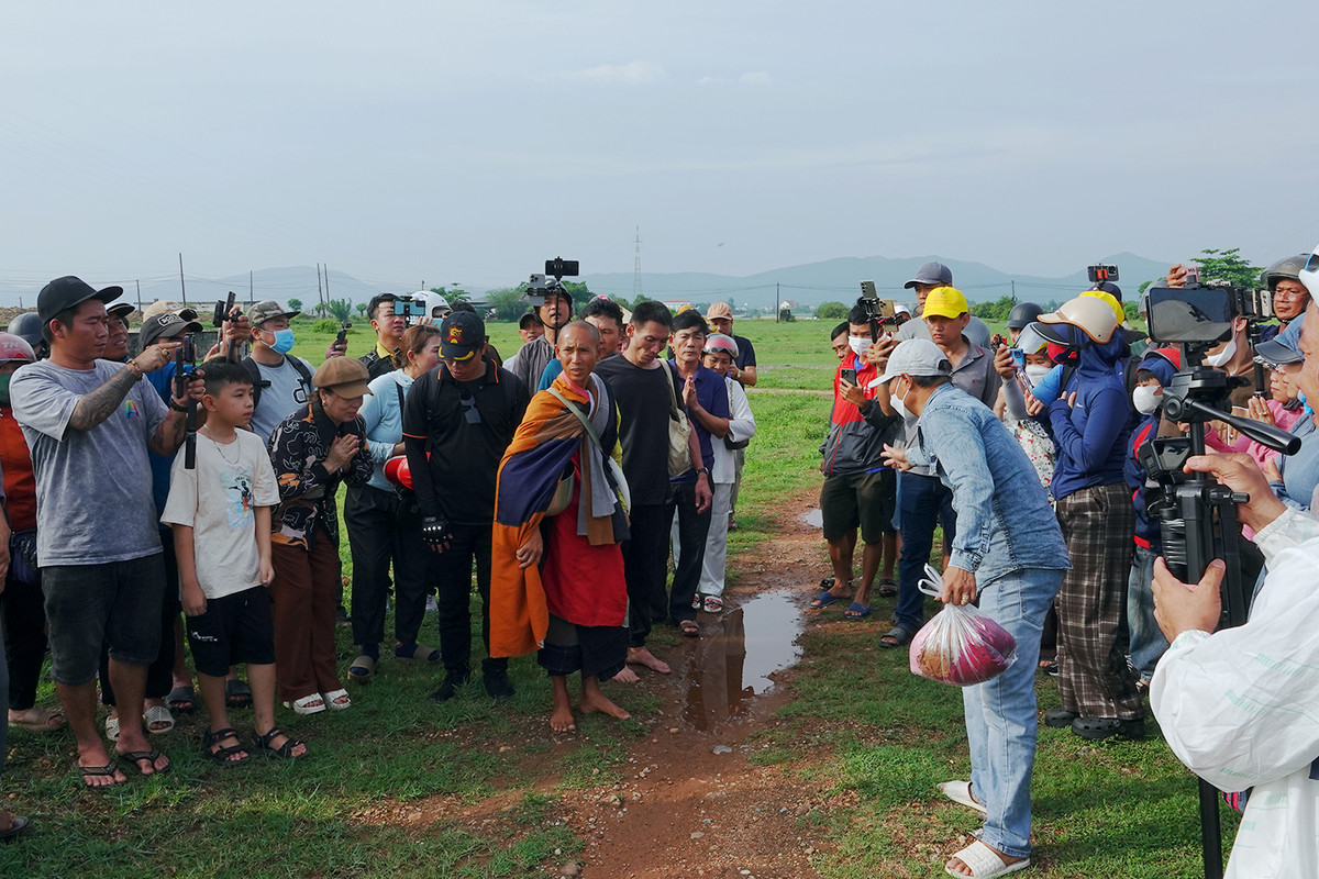 Đám đông quay chụp từng bước đi của ông Thích Minh Tuệ trên hành trình