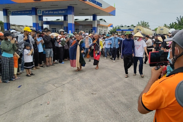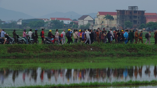 Những hình ảnh như một đoàn làm phim đang "hướng dẫn" diễn viên đi như thế nào, góc quay ra sao... Ông Tuệ đứng giữa, lộ rõ vẻ mặt mệt mỏi vì không còn chỗ nào tránh được đám đông.
