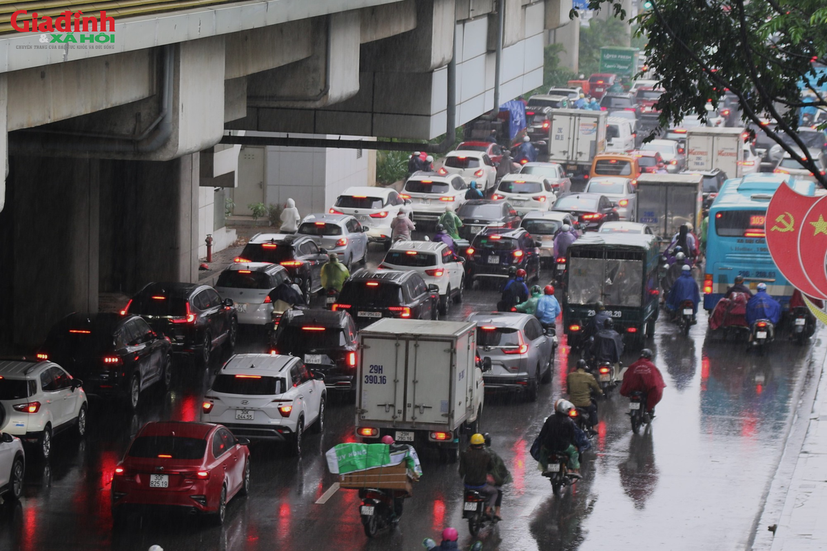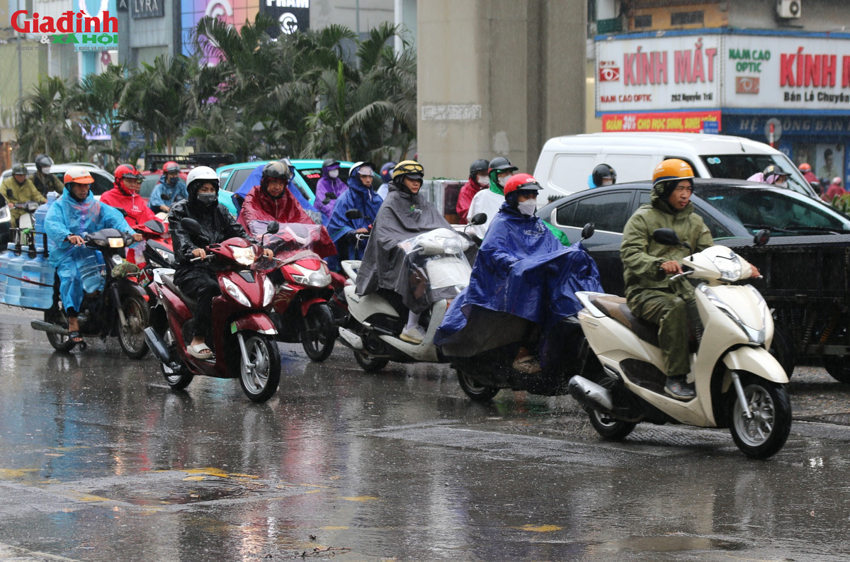 Ghi nhận của Gia đình và Xã hội trên một số tuyến đường như Nguyễn Trãi, Trần Phú, Ngã Tư Sở... Người đi xe máy phải nhích từng chút một, cơn mưa vào giờ cao điểm sáng khiến việc tham gia giao thông của người dân gặp nhiều khó khăn.