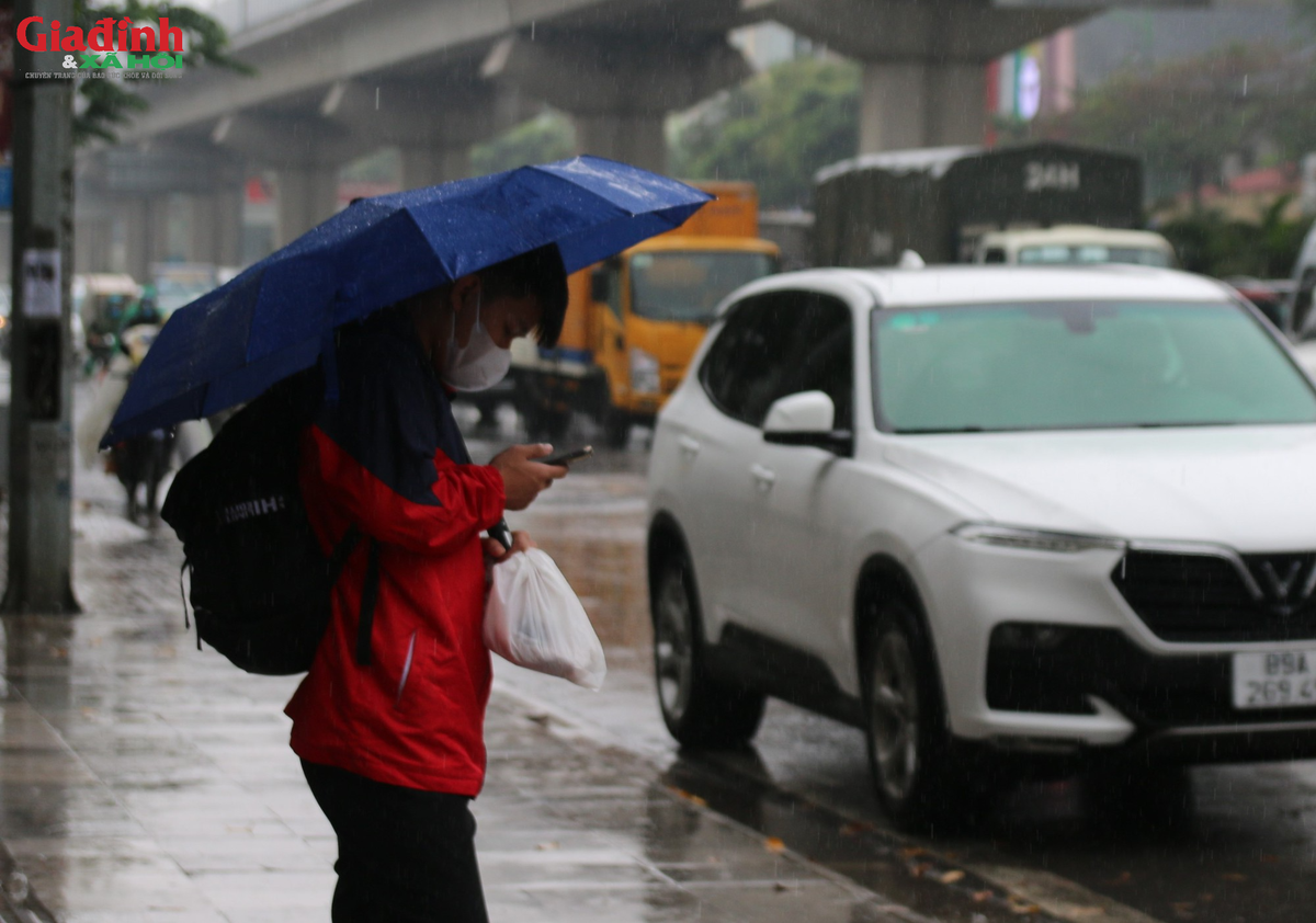 Không khí lạnh tràn về, người Hà Nội chật vật di chuyển trong mưa rét