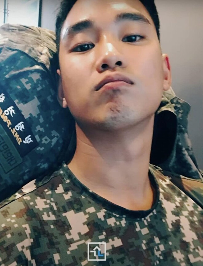 Ảnh Kim Soo Hyun khi nhập ngũ được kênh YouTube đăng tải.