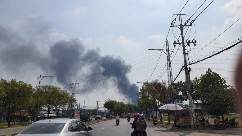 Vì xưởng làm nón bảo hiểm có nhiều vật liệu dễ cháy nên ngọn lửa nhanh chóng lan rộng, bùng phát dữ dội và bao trùm cả nhà xưởng. Ghi nhận tại hiện trường, ngọn lửa bốc lên ngùn ngụt, khói đen cao hàng chục mét.
