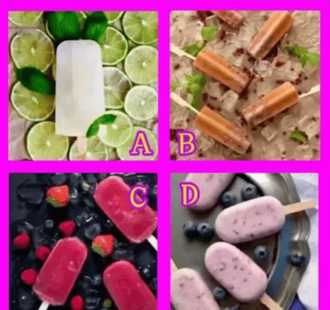 Lựa chọn D: Bạn chọn kem sữa chua việt quất, điều đó tiết lộ rằng bạn là người có tính cách tốt. Trong mắt mọi người, bạn là người sống tử tế, tốt bụng. Bạn có tâm trạng luôn rất ổn định, cho dù có người cố tình khiêu khích bạn, bạn cũng sẽ không tranh cãi với họ. Khi xảy ra xích mích hay xung đột với người khác, bạn thường là người đầu tiên xuống nước hoặc xin lỗi.