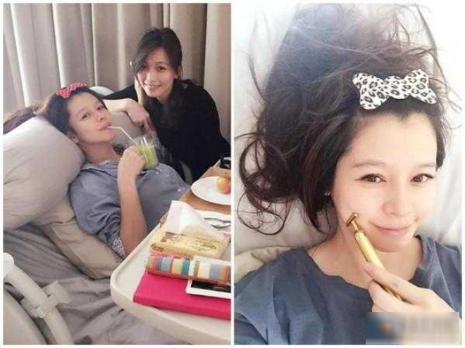 Hình ảnh Từ Nhược Tuyên nằm viện vất vả mang bầu sinh con.