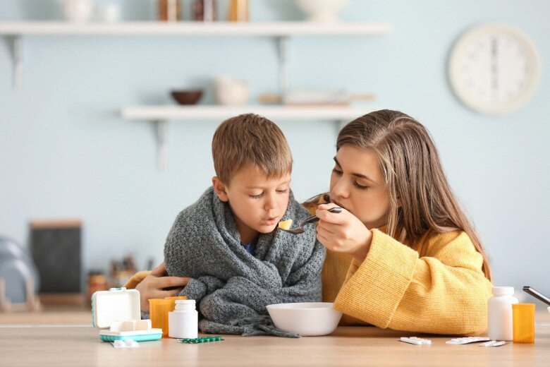 Bố mẹ bị ốm nhưng vẫn ăn cùng trẻ có thể khiến trẻ bị lây bệnh. (Ảnh minh họa).