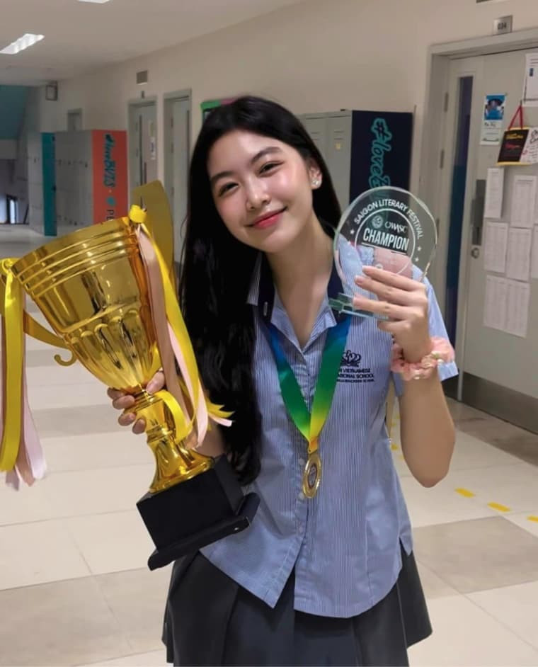 Lọ Lem được truyền thông săn đón nồng nhiệt không chỉ vì đơn giản là đẹp và là con sao. Thành tích học tập của Lọ Lem cũng là điều khiến nhiều người ngưỡng mộ. Học trường quốc tế từ nhỏ nên cô bạn có khả năng nói tiếng Anh rất lưu loát, nhiều lần MC Quyền Linh tham gia sự kiện ở trường cùng con gái đều phải nhờ con làm phiên dịch.