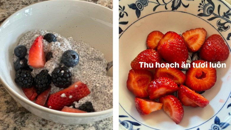 Người đẹp cũng thường xuyên bổ sung trái cây vào khẩu phần ăn. Những loại trái cây mà cô lựa chọn đa số là những loại quả giàu chất chống oxy hoá như dâu, quả mọng,... giúp chống lão hoá, mang đến làn da mịn màng, tươi sáng.
