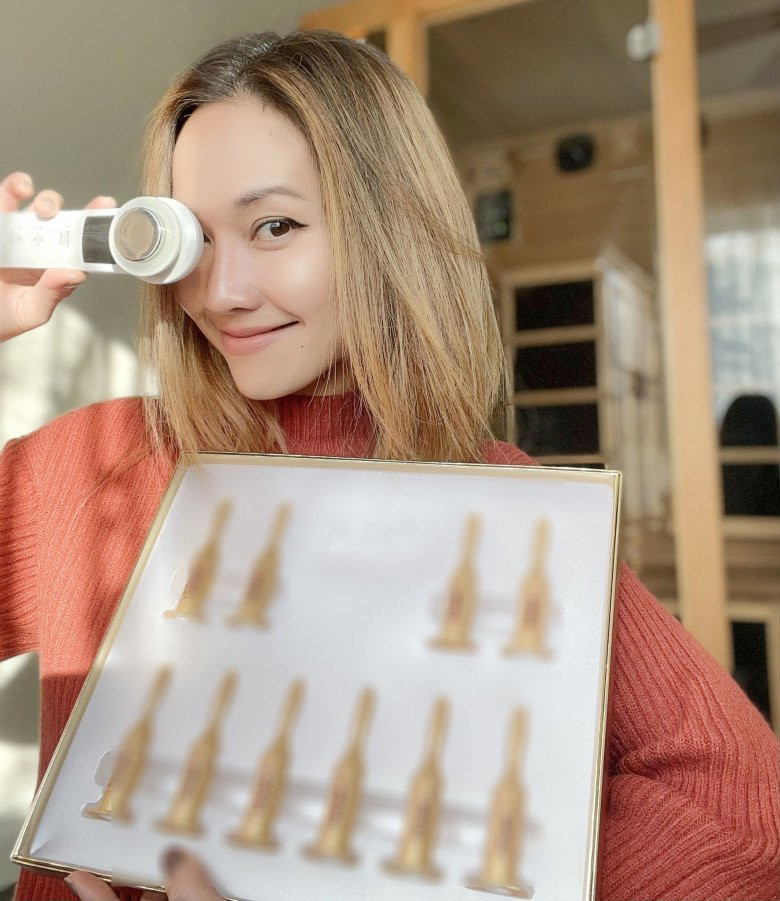 Bên cạnh làm đẹp và chống lão hoá từ bên trong, cô cũng đầu tư những dụng cụ làm đẹp chuyên dụng. Trong đó, có thể kế đến chiếc máy điện di tinh chất. Chúng giúp mang những tinh chất thẩm thấu sâu vào da, phát dụng hiệu quả tối ưu.