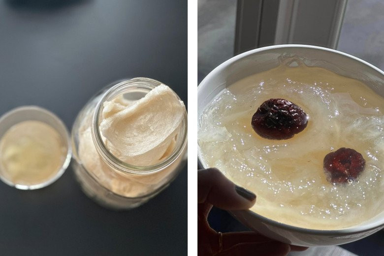 Trên trang cá nhân của mình, Kim Hiền thường chia sẻ hình ảnh ăn tổ yến. Đây được xem là thứ "vàng trắng" vì có giá khá đắt đỏ, tại thị trường Mỹ có giá trên dưới 2000USD/kg. Dù vậy, để có thể làm đẹp từ bên trong, người đẹp không ngại chi tiền. Cô cho biết đã bắt đầu gắn bó với tổ yến hơn 2 năm.