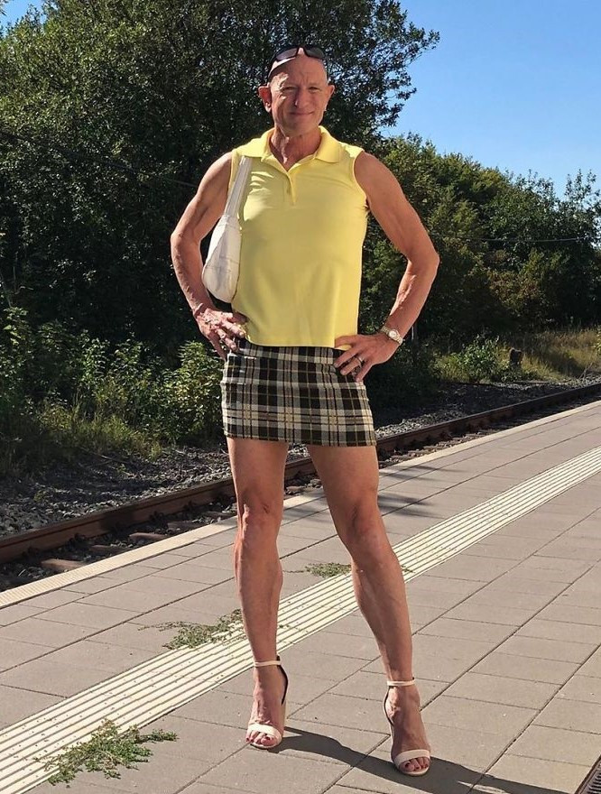 Những món đồ tạo nên xu hướng hiện nay như váy kẻ sọc, họa tiết da thú, túi kẹp nách... cũng được Mark nhanh chóng sở hữu. Kể cả khi không đi làm, ông vẫn giữ thói quen diện chân váy ngắn cùng giày gót nhọn. Ảnh: Bored Panda.