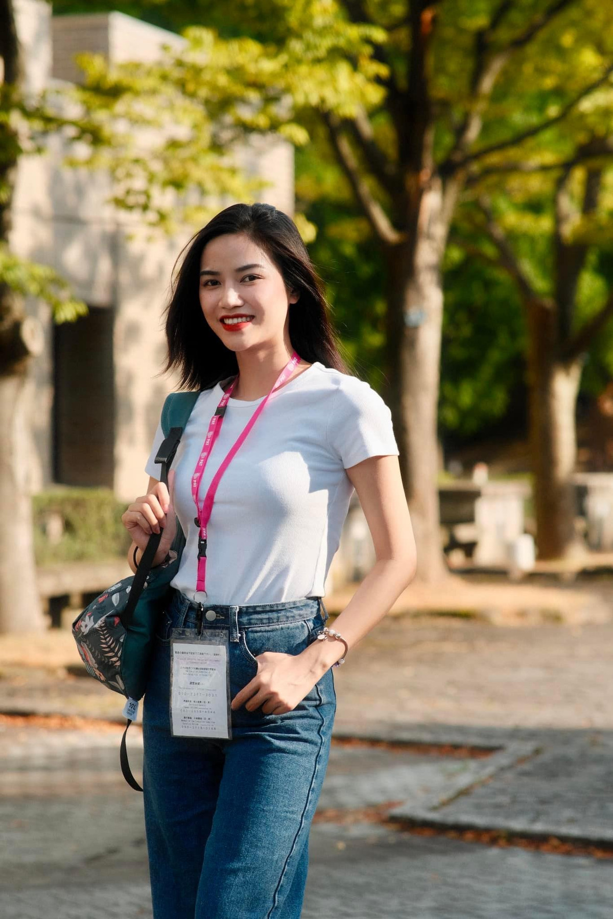 Nữ diễn viên khoe vẻ đẹp dịu dàng trong tà áo dài trong chuyến công tác tại Nhật Bản.