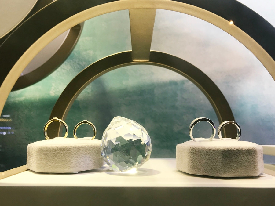 Một số sản phẩm trang sức được trưng bày bên mặt ngoài tòa nhà DOJI Tower ở “đất vàng” Lê Duẩn.