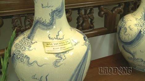 | Đôi bình đựng đất ở Trường Sa được dâng lên Đại tướng |