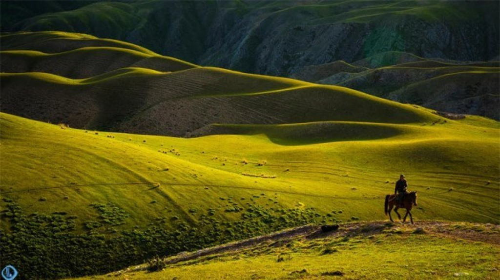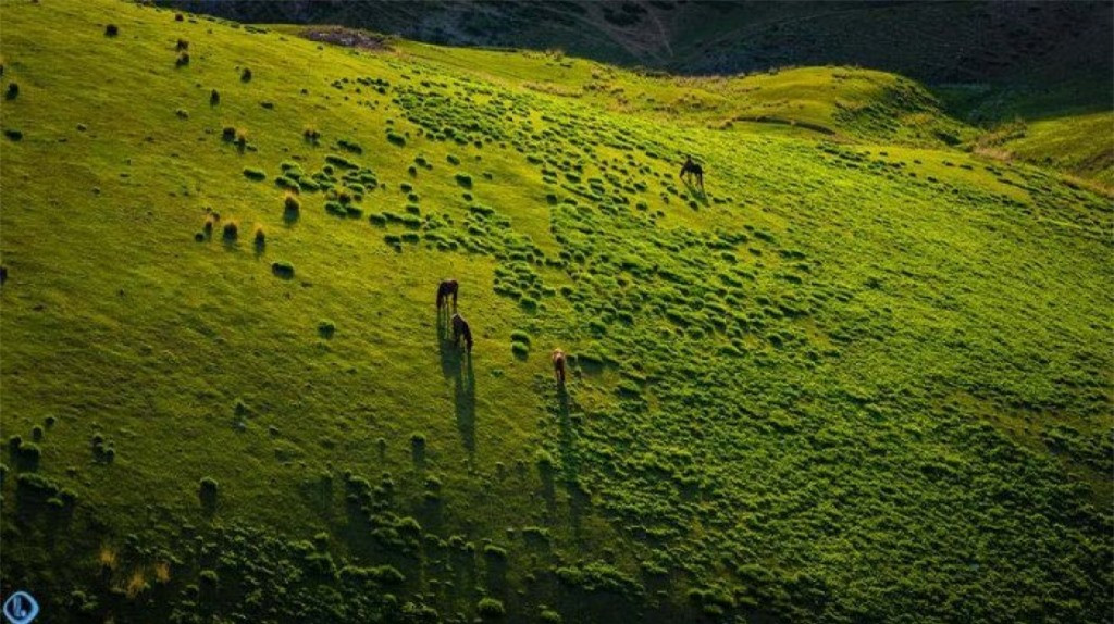 Đồng cỏ Kalajun là di sản thiên nhiên thế giới, với diện tích hơn 2.800km vuông. Nó nằm trong Thung lũng sông Ili của người Thổ Nhĩ Kỳ, là vùng chuyển tiếp từ Tây Thiên Sơn sang sông Ili. Do đất đai ở đây màu mỡ, khí hậu mát mẻ nên thích hợp cho cỏ phát triển. Từ tháng 5 đến tháng 9 hằng năm, đồng cỏ được người dân địa phương sử dụng để chăn thả khoảng 200 nghìn con gia súc các loại.