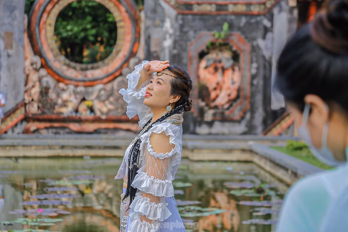 Các bạn trẻ tranh thủ lưu lại những kỉ niệm đẹp khi đến Hội An.