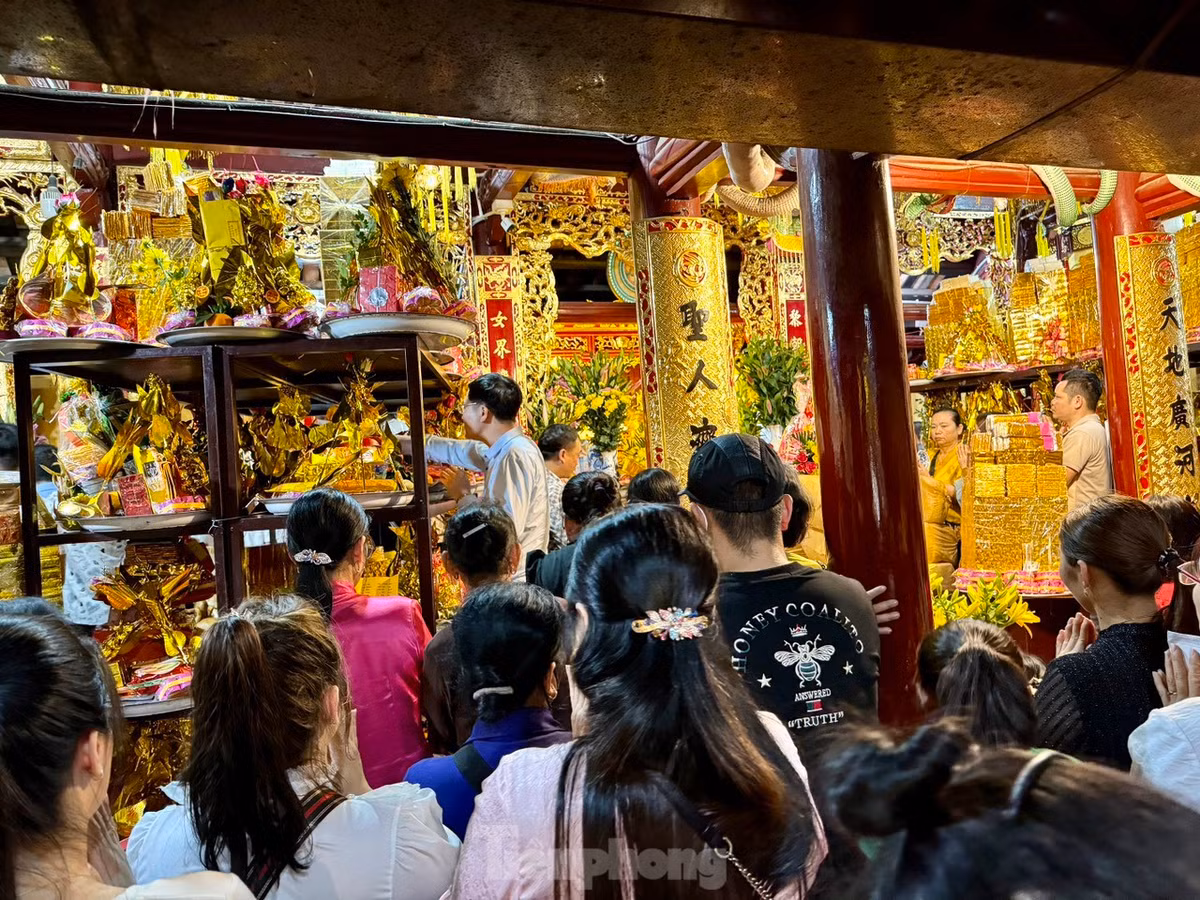 Bên trong chính điện chật kín từ sáng đến chiều tối, nhiều người không kịp lách vào bên trong phải vái vọng từ ngoài sân.