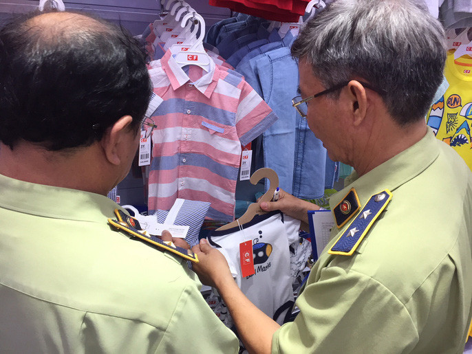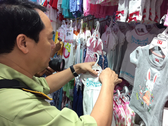 Tại đây, ông Hùng đã tham gia kiểm tra từng sản phẩm cũng như có nhận định ban đầu về một số nghi vấn. Chẳng hạn khi kiểm tra một chiếc áo, ông Hùng đặt vấn đề về tem nhãn không rõ ràng cần phải xem xét có đúng xuất xứ hay không.