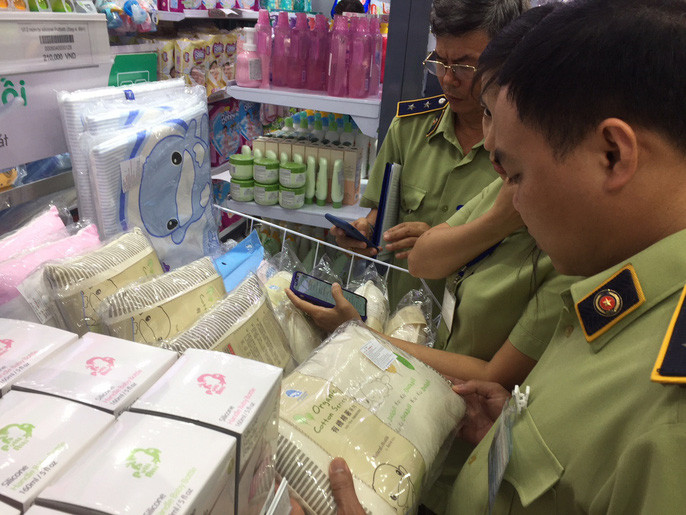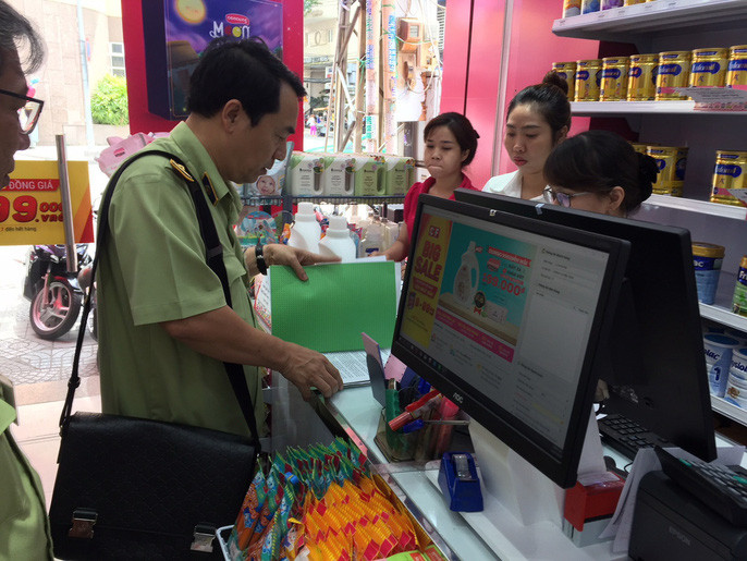 | Kiểm tra tại cửa hàng Con Cưng trên đường Tôn Thất Tùng, quận 1, TP HCM. |