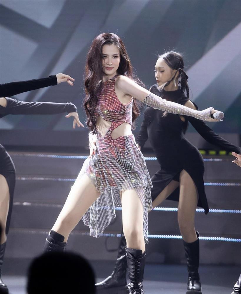 br/> Vừa qua, Đông Nhi có màn xuất hiện gây sốt khi trình diễn tại Hoa hậu thể Thao Việt Nam 2022. Biểu diễn một ca khúc sôi động nên người đẹp chọn cho mình bộ váy ngắn sexy, chất liệu lưới xuyên thấu màu đỏ nhạt. Mẹ 1 con cực nổi bật nhờ thiết kế lấp lánh bắt ánh đèn sân khấu.