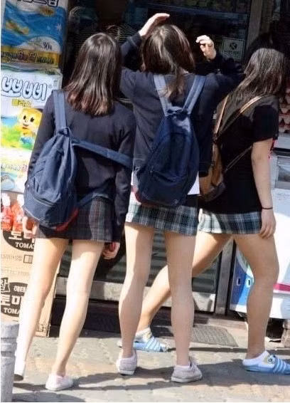 Trong khi đó, hầu hết các trường trung học tại xứ Kim Chi đều có những nội quy khá gắt gao về đồng phục như: không được mặc váy ngắn quá đầu gối, vạt áo không được cắt quá cao...