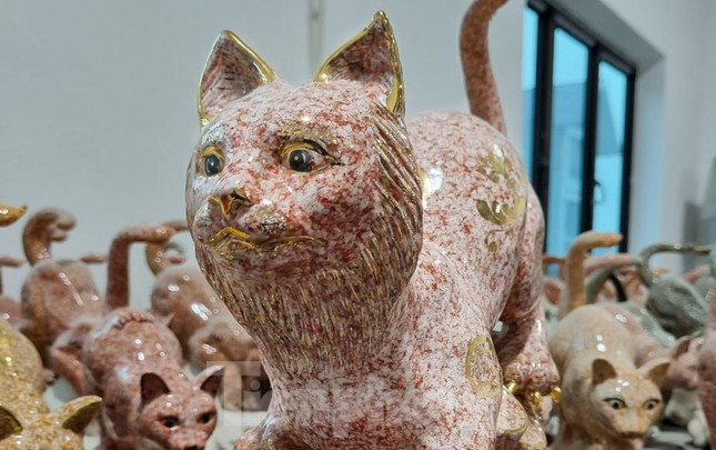 Theo anh Quỳnh, đời sống người dân đang phát triển, mèo dát vàng được tiêu thụ tốt trong dịp này. Không chỉ ở miền Bắc, khách hàng các tỉnh phía Nam cũng rất ưa chuộng linh vật mèo. Một số doanh nghiệp cũng đặt hàng làm quà biếu Tết. “Sản xuất linh vật mèo, chúng tôi sử dụng men hỏa biến, các chi tiết được vẽ bằng vàng 24k phù hợp với ngũ hành (kim - mộc - thủy - hỏa - thổ), mong muốn cầu may mắn, tài lộc trong năm mới", anh Quỳnh phân tích.