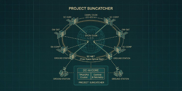 Google đang phát triển một dự án trung tâm dữ liệu trí tuệ nhân tạo mang tên Suncatcher, với kế hoạch triển khai 81 vệ tinh quay quanh Trái Đất trong quỹ đạo thấp.