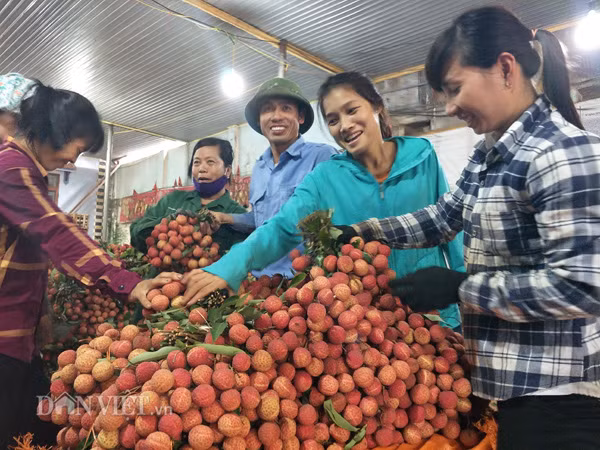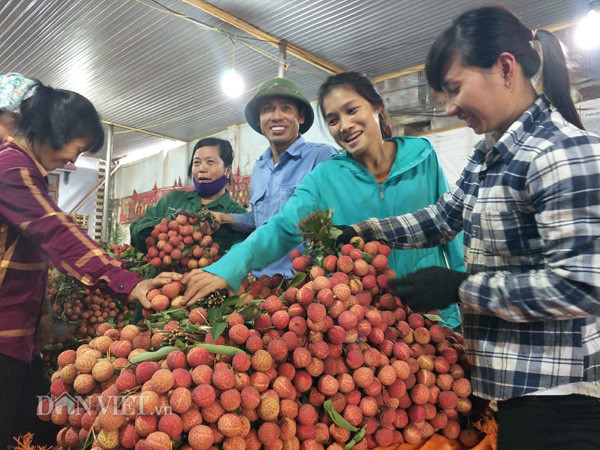 Thời điểm này, cơ sở thu mua vải thiều của bà Nguyễn Thị Hoài ở huyện Lục Ngạn hoạt động liên tục từ sáng sớm đến 7h tối để thu mua vải đưa đi Sài Gòn. Bà Hoài cho biết, hiện trung bình mỗi ngày đơn vị của bà thuê hàng chục lao động lo công việc thu mua, đóng hàng.
