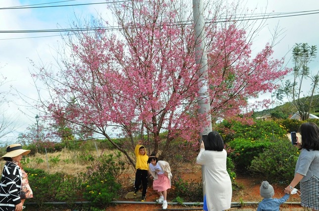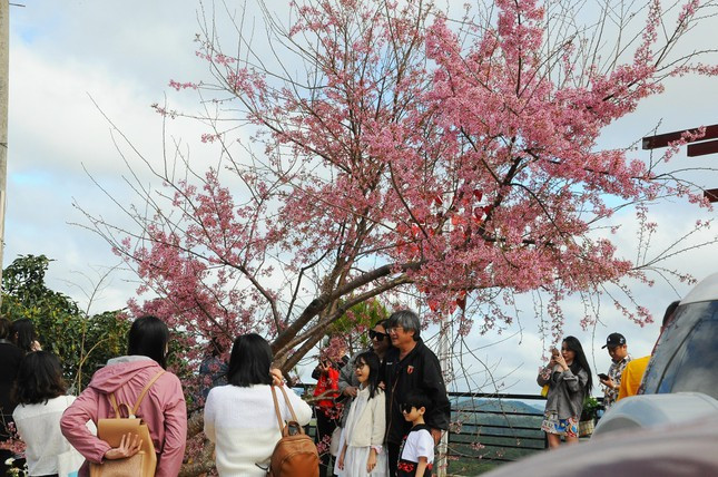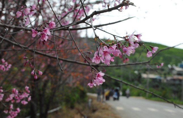Một cây mai anh đào hút khách tại quán cafe trên đường từ trung tâm Đà Lạt đi điểm du lịch Đồi chè Cầu Đất.
