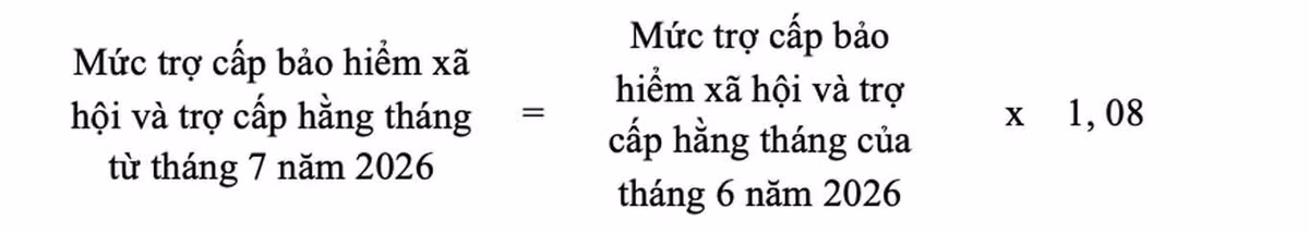 Điều chỉnh tăng thêm 8% trên mức trợ cấp bảo hiểm xã hội và trợ cấp hằng tháng của tháng 6/2026 đối với các đối tượng quy định:
