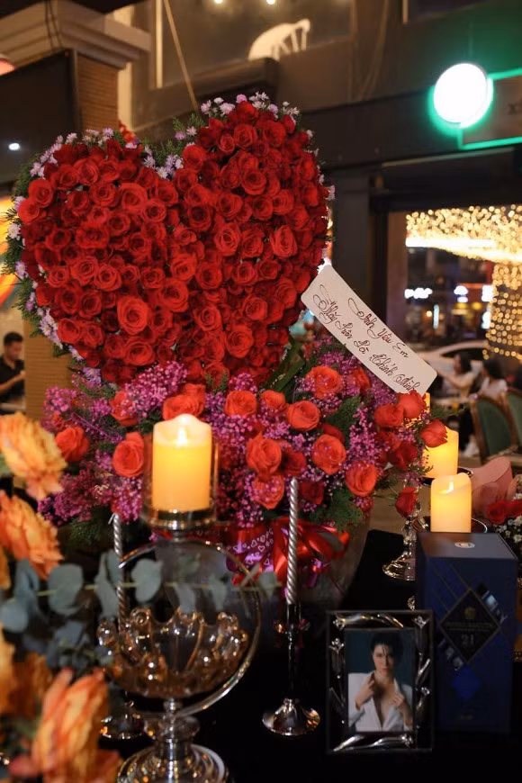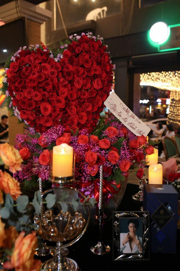 Không gian tiệc khá giản dị với hoa và nến. Cựu người mẫu chỉ mời những người bạn thân thiết nhất và "quẩy tưng bừng" trong suốt buổi tiệc.