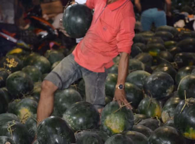 Dưa hấu xả hàng, người dân nườm nượp đi mua trong đêm cuối năm