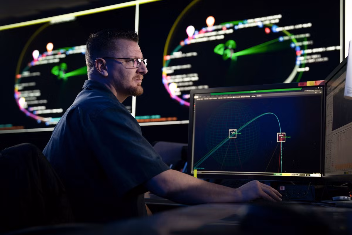Nhân viên tác chiến sử dụng AI thiết lập kế hoạch tấn công đường không trong cuộc diễn tập. Ảnh: USAF