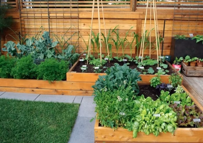 Với những chiếc giường có kích cỡ phù hợp, bạn có thể trồng rau ở diện tích theo ý muốn. Trên những chiếc giường này, bạn có thể trồng bất cứ loại rau yêu thích nào từ cà chua, rau diếp, rau cải…Ngoài ra, trong khu vườn bạn cũng có thể chăn thả những chú gà để thu hoạch thêm trứng sạch.